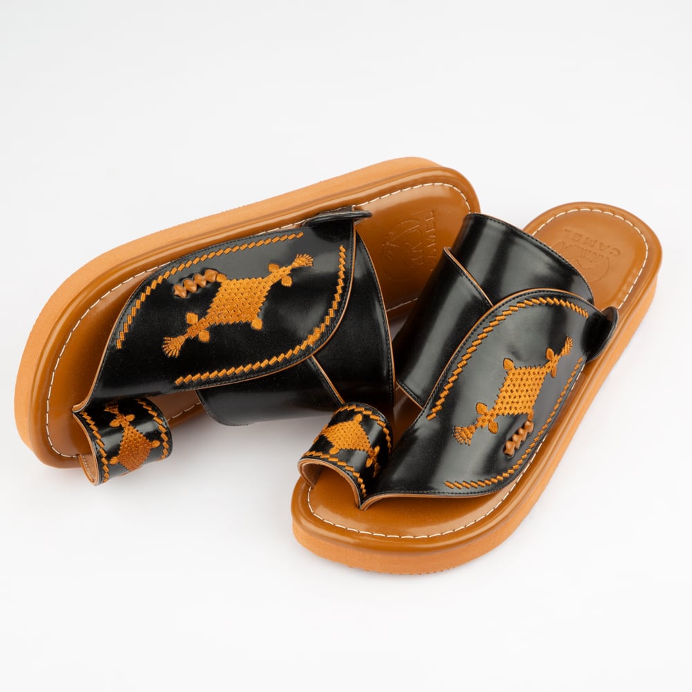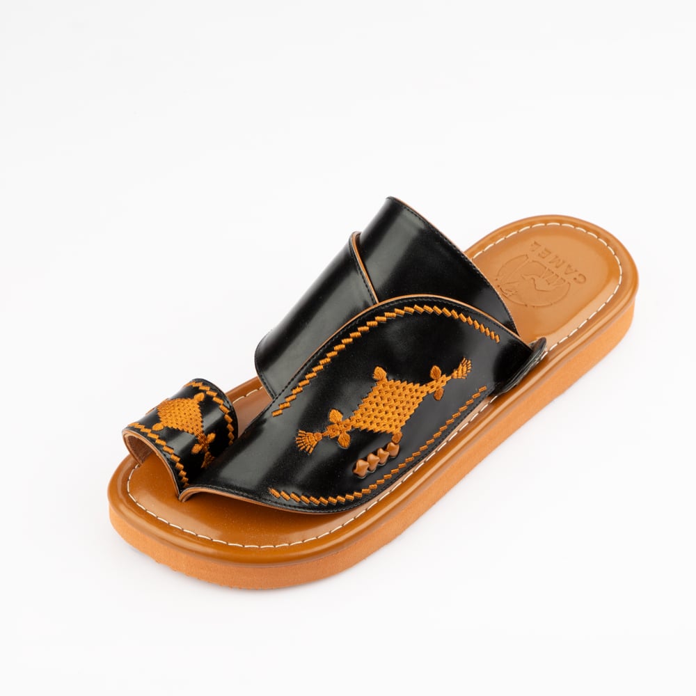 نعال شرقي جلد أسود مطرز ونعل طبي جملي