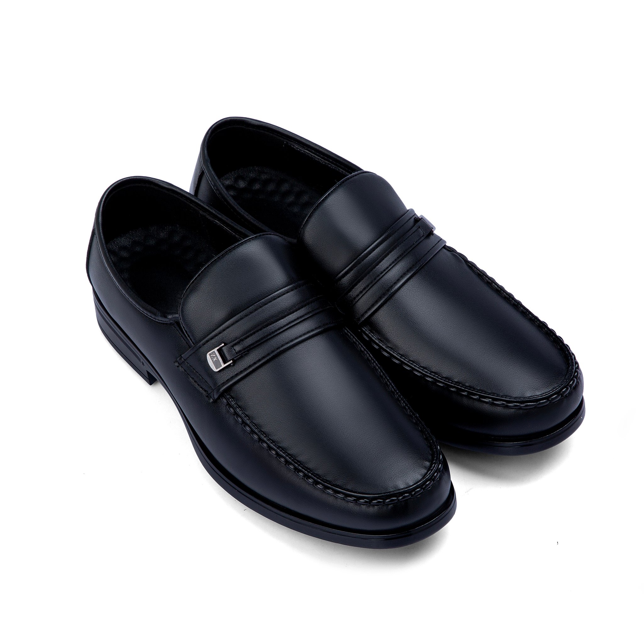 يتميز بتصميمه الكلاسيكي العصري مع حلقة معدنية أنيقة تضيف لمسة من الفخامة والرُقي، بالإضافة إلى نعل داخلي مريح بتقنية الذاكرة (Memory Foam) لدعم القدم في الاستخدام الطويل.