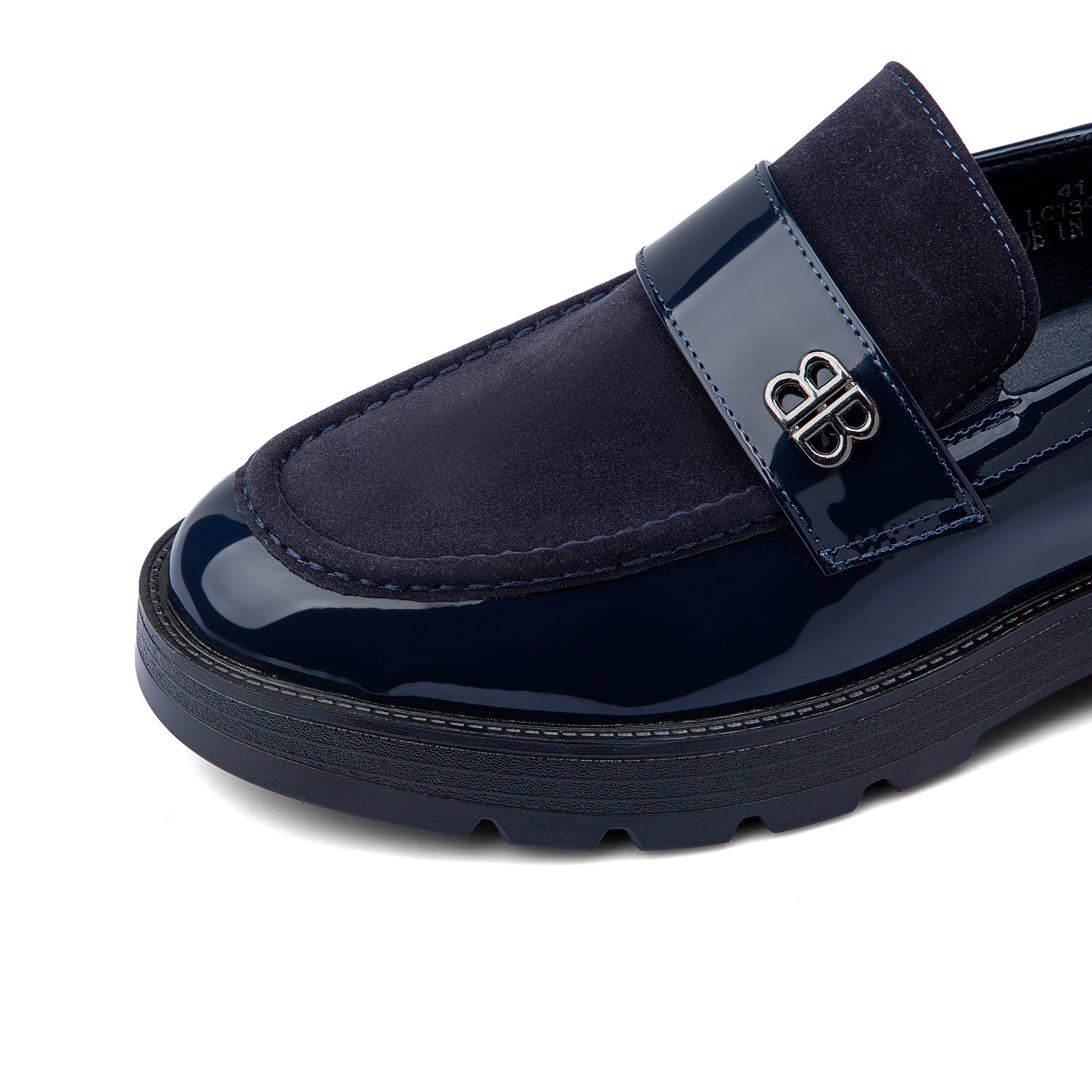 جزمة لوفر طبية جلد لامع فاخر ومخمل - كحلي
