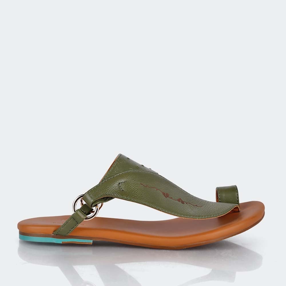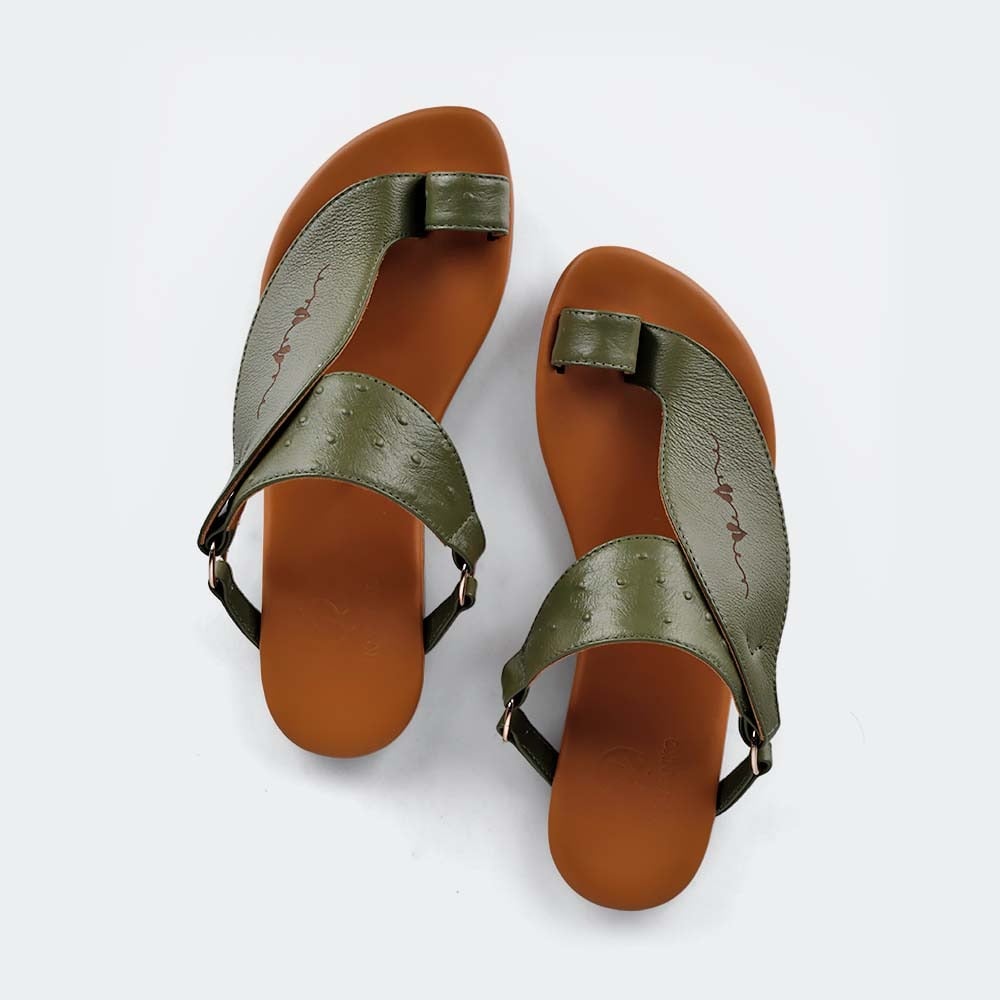 حذاء نسائي طبي شرقي - جلد طبيعي زيتي