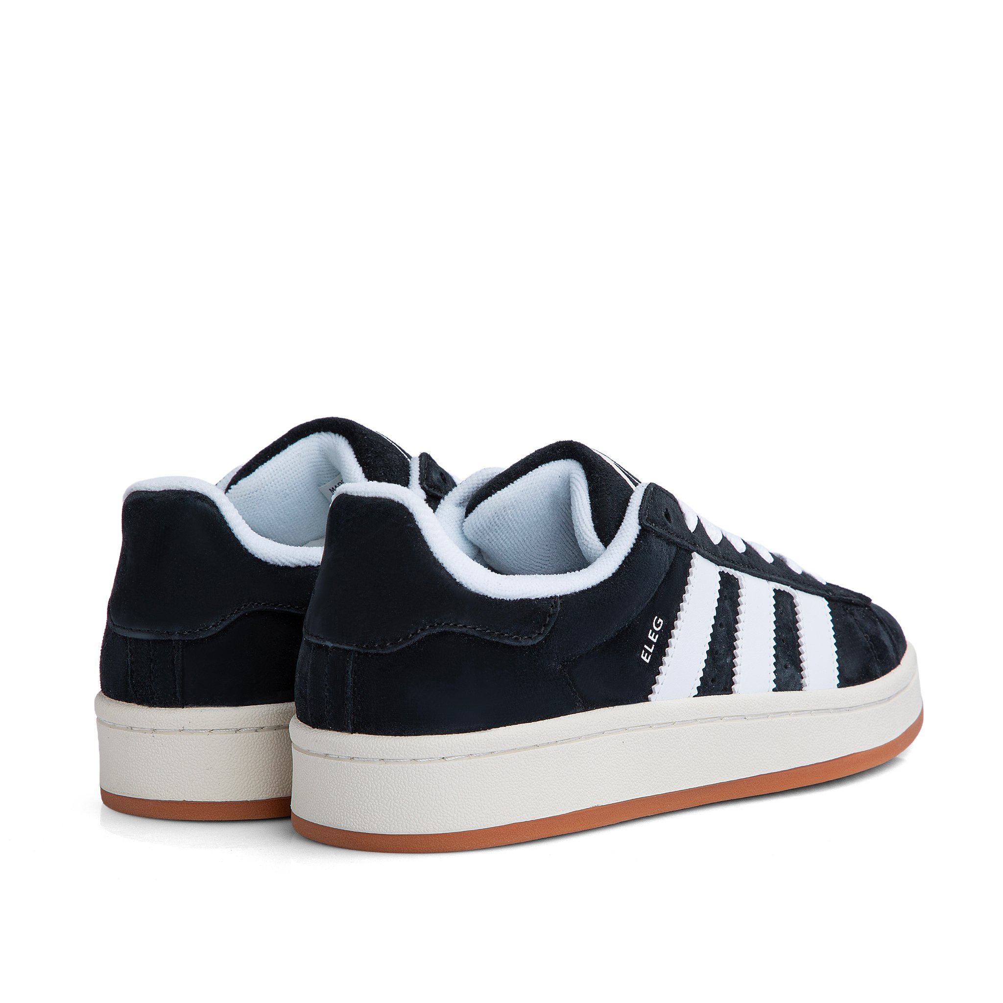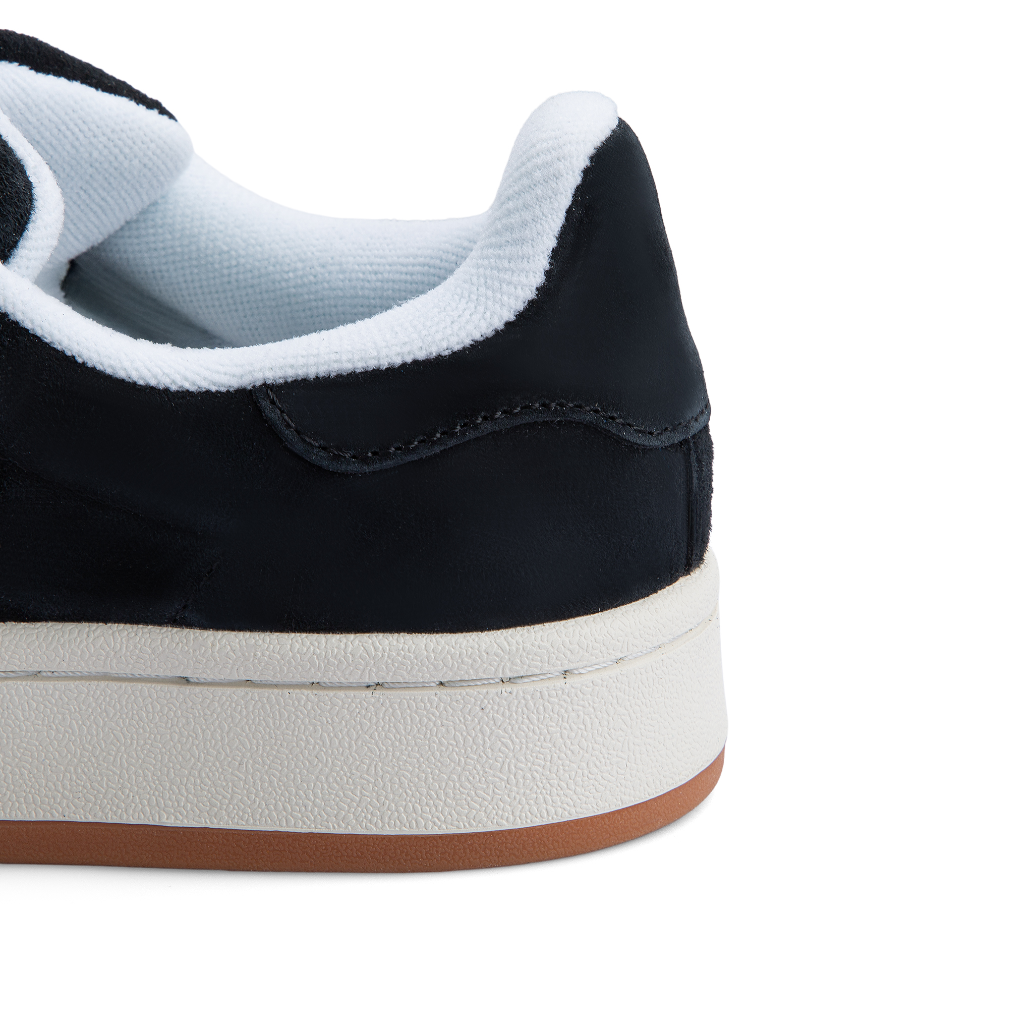 حذاء كاجوال بلمسة رياضية نقّاطة، يجمع بين اللون الأسود القوي والخطوط البيضاء الحيوية.