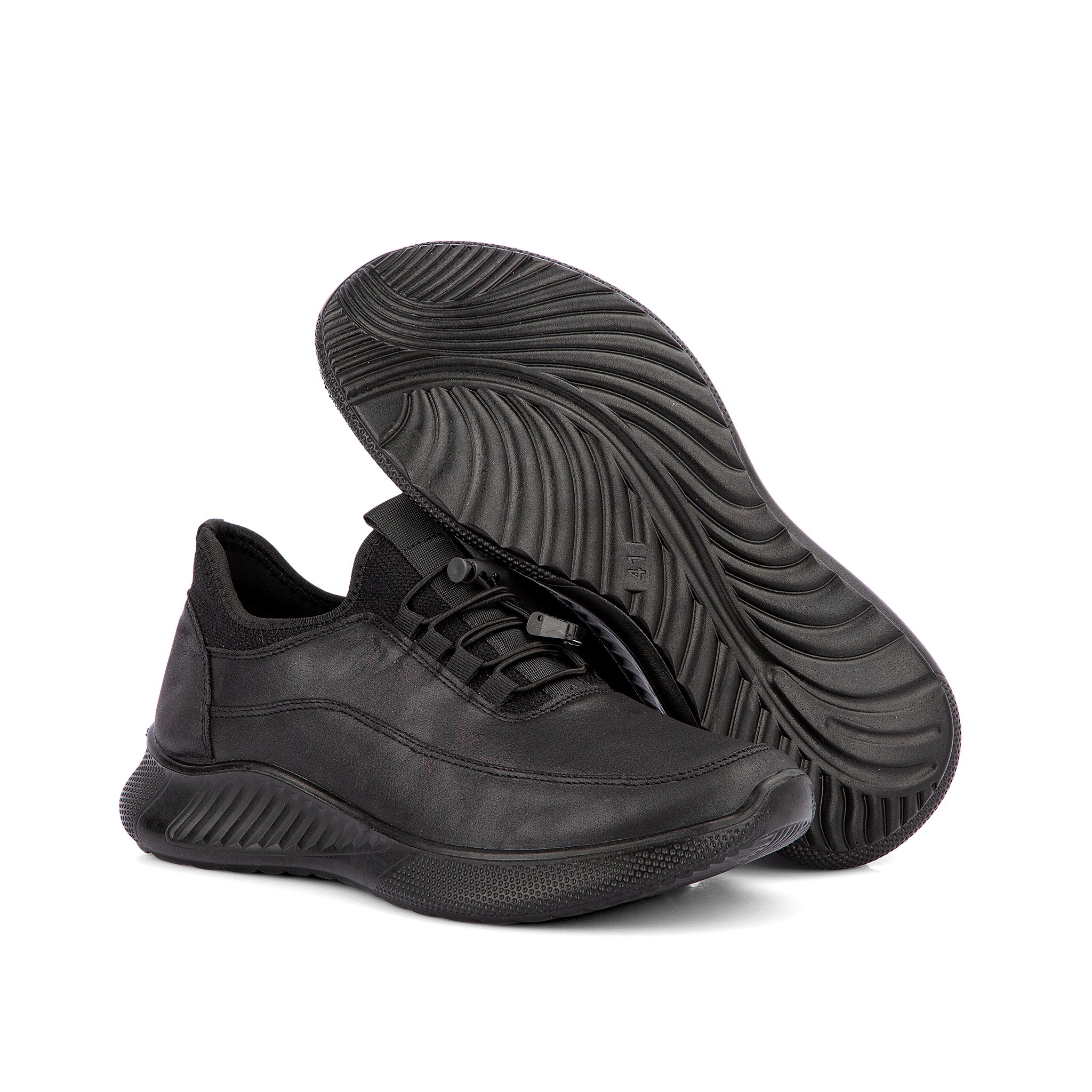 مصنوع من جلد طبيعي أسود فاخر يمنحه مظهرًا أنيقًا وفخمًا. مزود بنعل طبي مريح يساعد في تخفيف الضغط على القدمين. تصميمه الكاجوال العصري يناسب جميع المناسبات اليومية والرسمية.