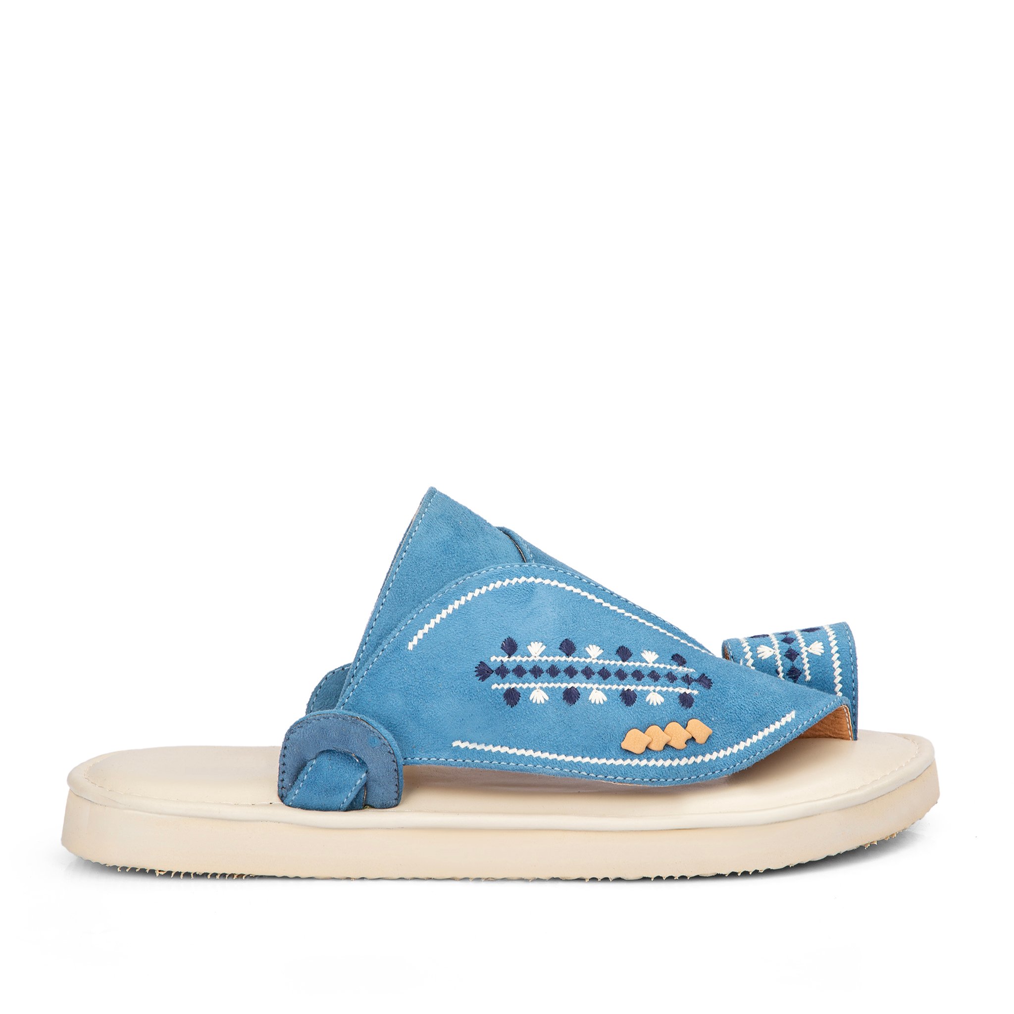 ارتقِ بأسلوبك مع هذا الحذيان الشرقي الفخم، المصنوع من شامواه ناعم بلون سماوي أنيق ومزدان بتطريز دقيق يضيف لمسة من الرقي والتميز. تصميمه يجمع بين الأناقة الشرقية التقليدية والراحة العصرية ليكون اختيارك الأمثل في جميع المناسبات.