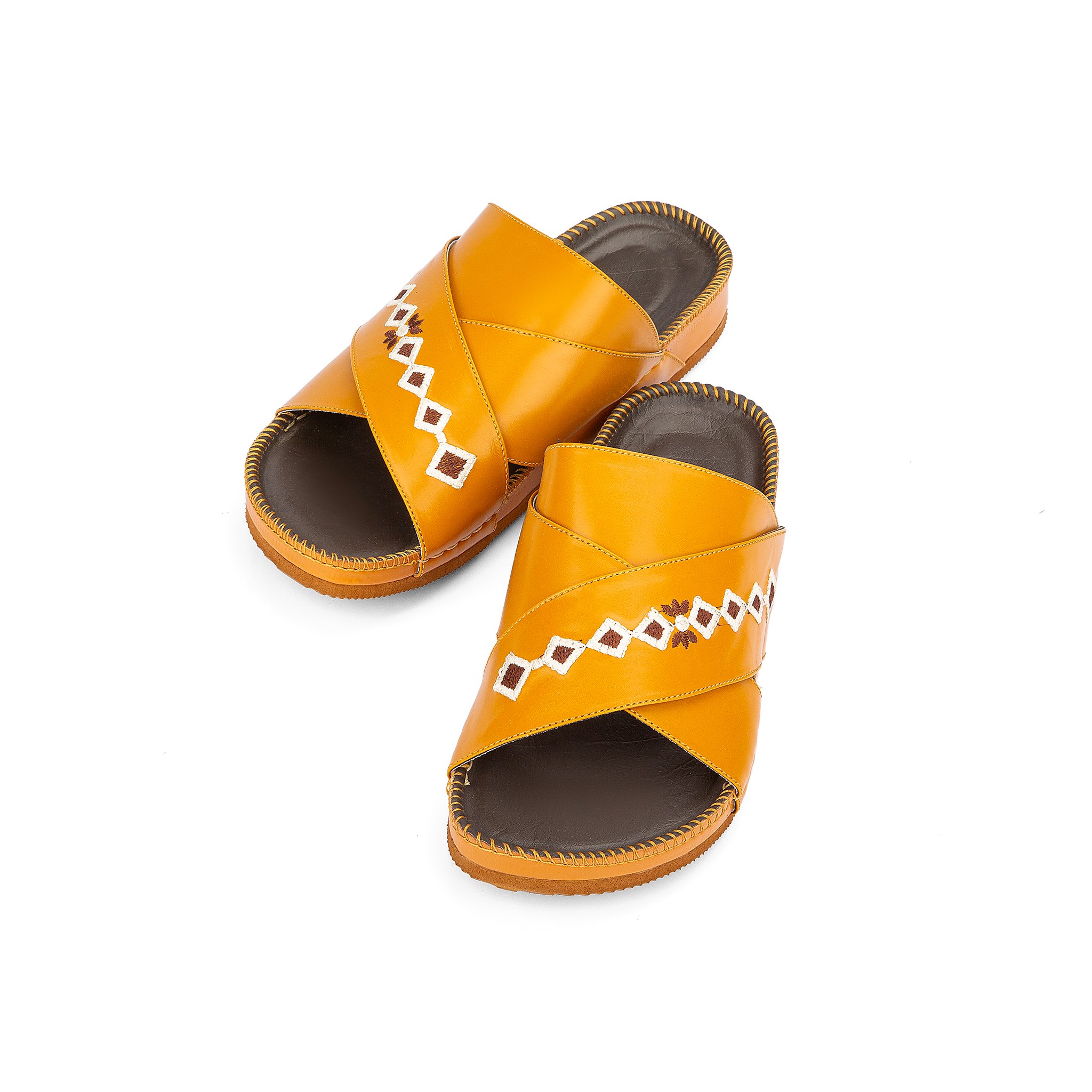 يضفي هذا المداس لمسة من الرقي والفخامة على إطلالتك، حيث يجمع بين الجلد الطبيعي الفاخر والتطريز اليدوي الذي يروي قصة الحرفية الشرقية. إنه قطعة استثنائية تُبرز أناقتك في كل مناسبة.