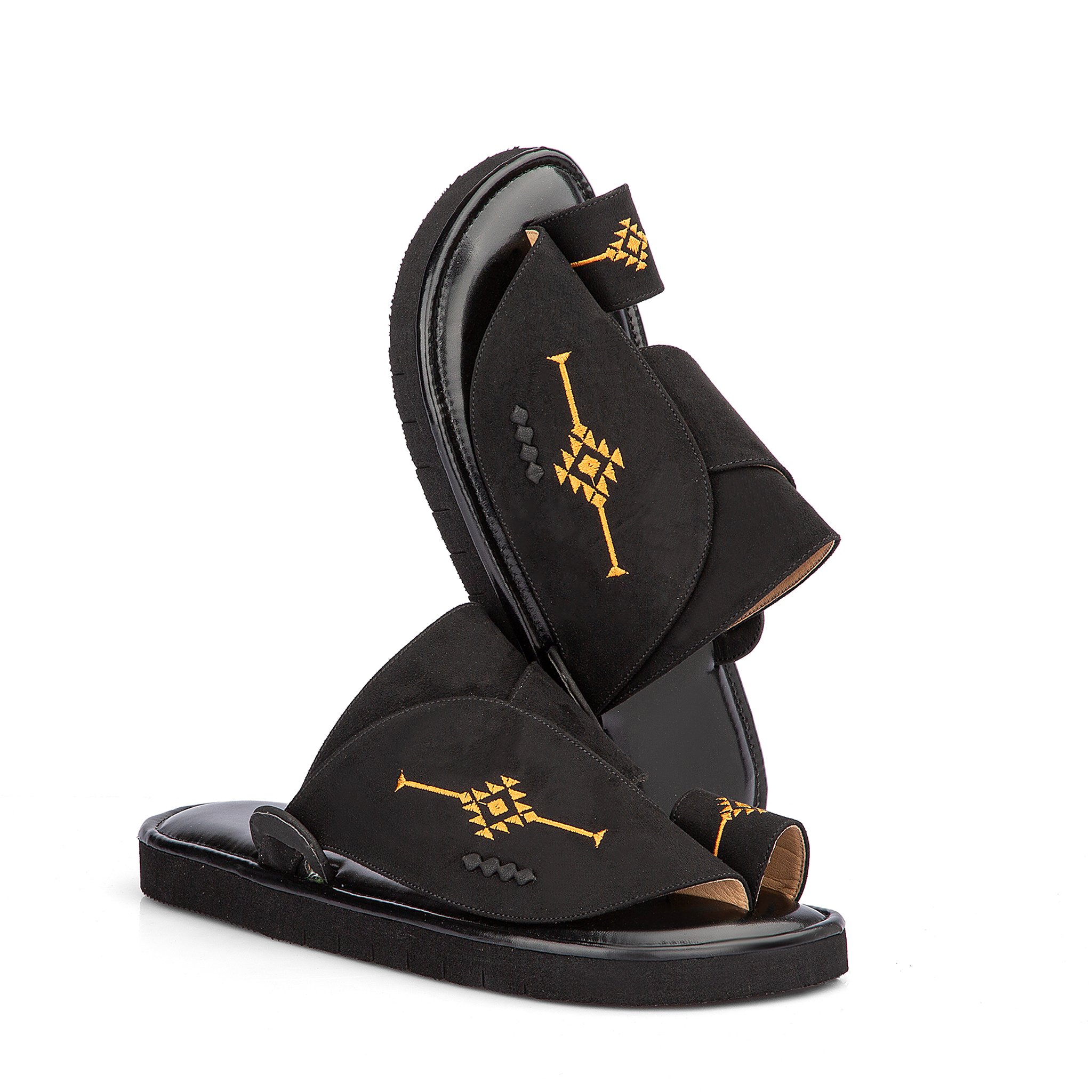 نعال شرقي فاخر من الشامواه الأسود بتطريز فخم