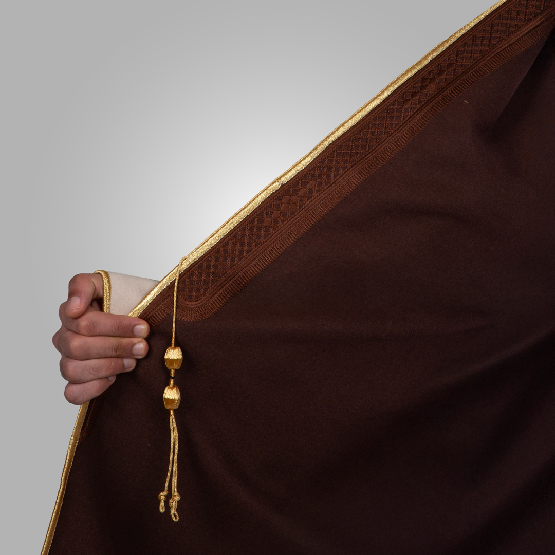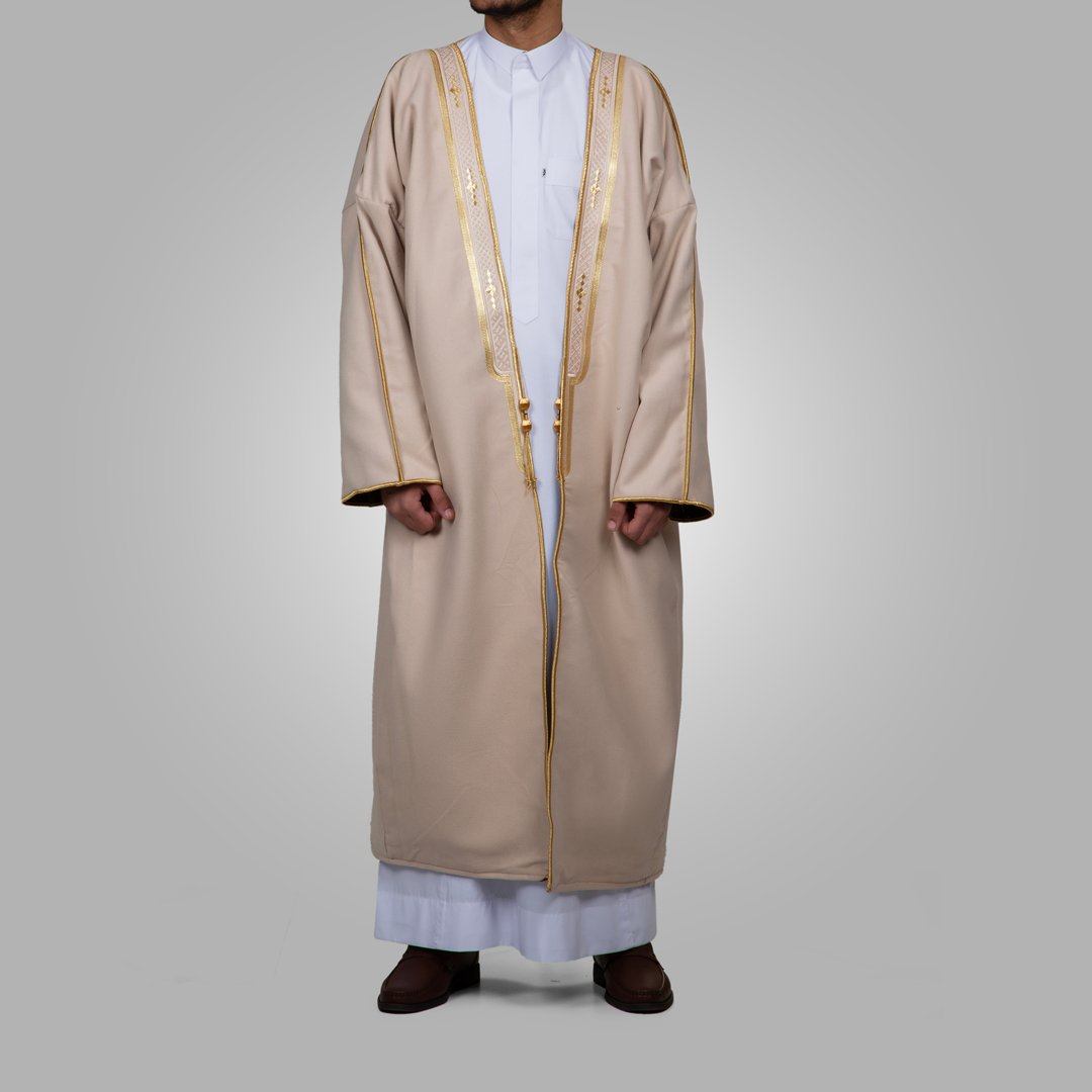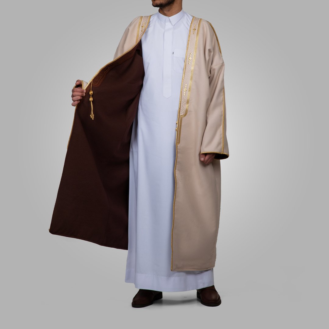 فروة رجالي مطرز وجهين بيج وبني بخيوط مذهبة