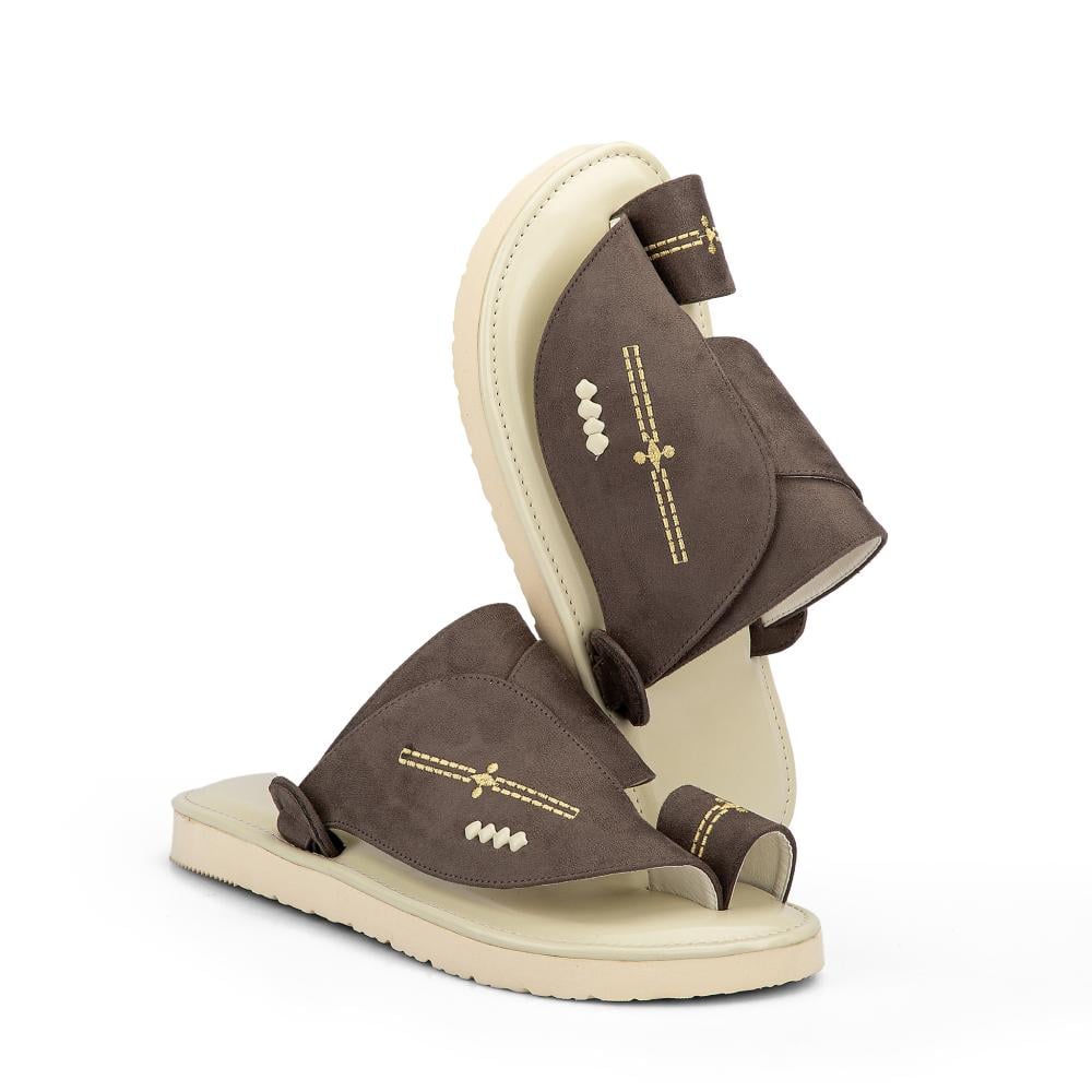يوفر دعمًا طبيًا مثاليًا يمنح راحة طوال اليوم. يتميز بخامة عالية الجودة وألوان متناغمة من البني والبيج تناسب كل المناسبات. تصميمه الشرقي المطرز يضفي عليه طابعًا فريدًا يعكس أصالتك.