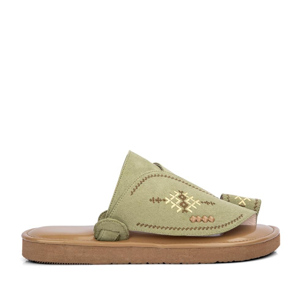 حذيان فاخر من الشمواه الزيتي الفاتح المطرز
