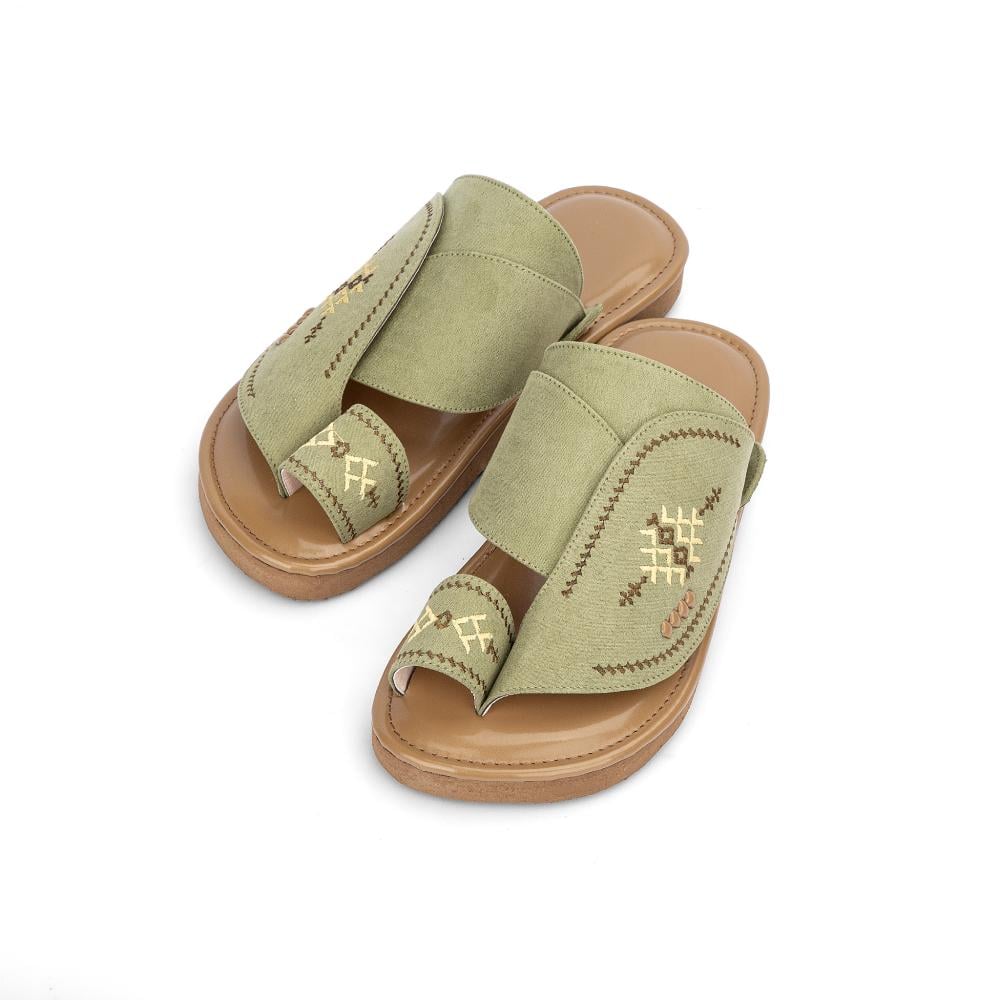 هذا الحذاء هو الخيار الأمثل لمن يبحث عن التميز، حيث يجمع بين رقي الشمواه الزيتي الفاتح وتفاصيل التطريز اليدوي التي تعكس التراث الشرقي الأصيل بلمسة عصرية تناسب جميع المناسبات.