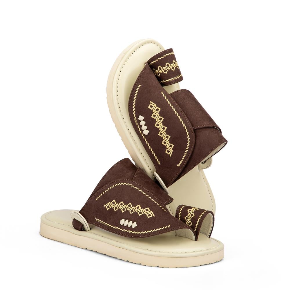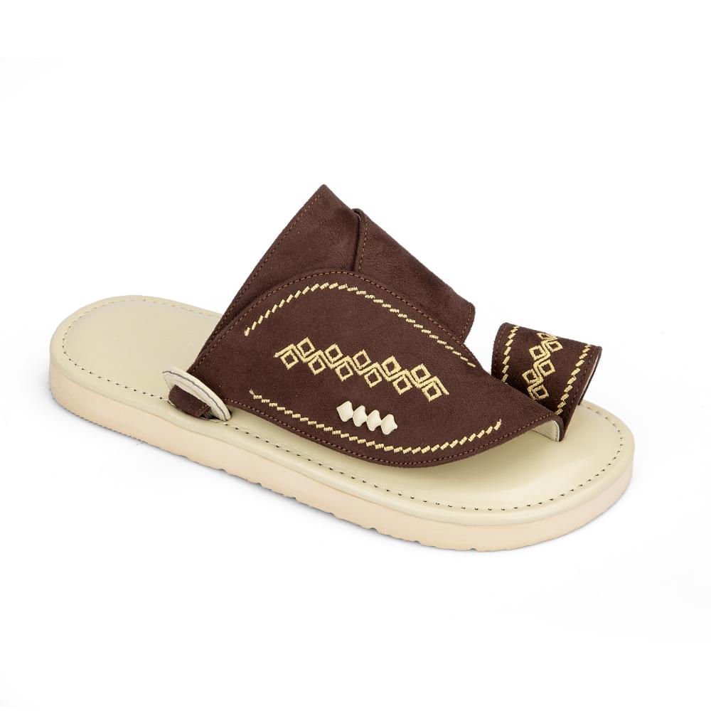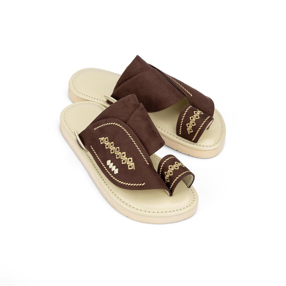 حذاء شرقي شامواه بني مطرز ونعل طبي سكري
