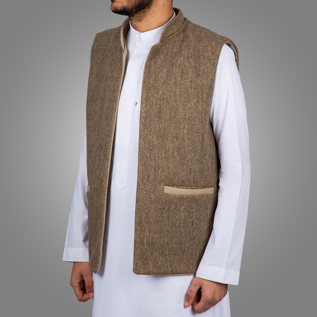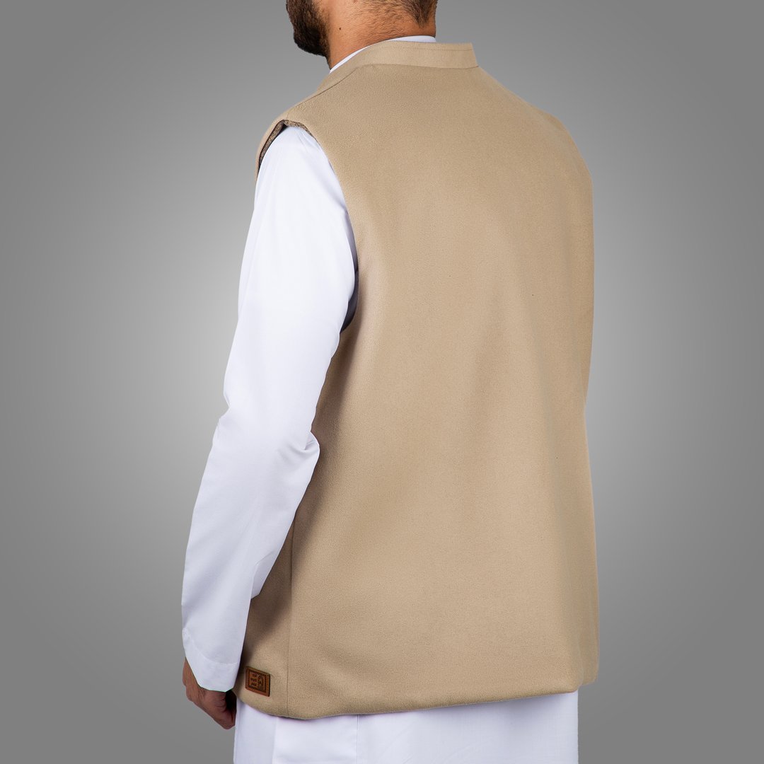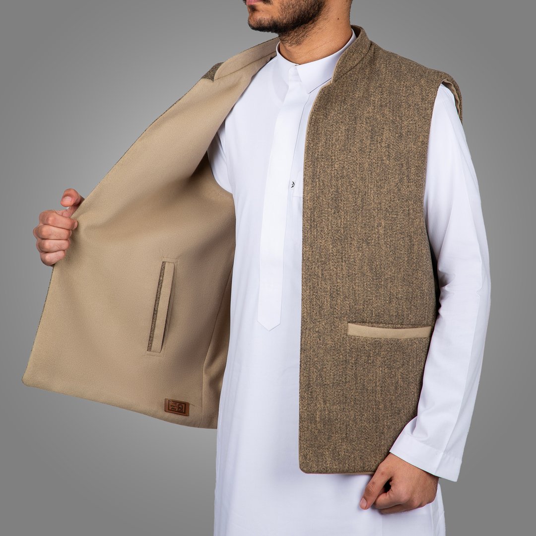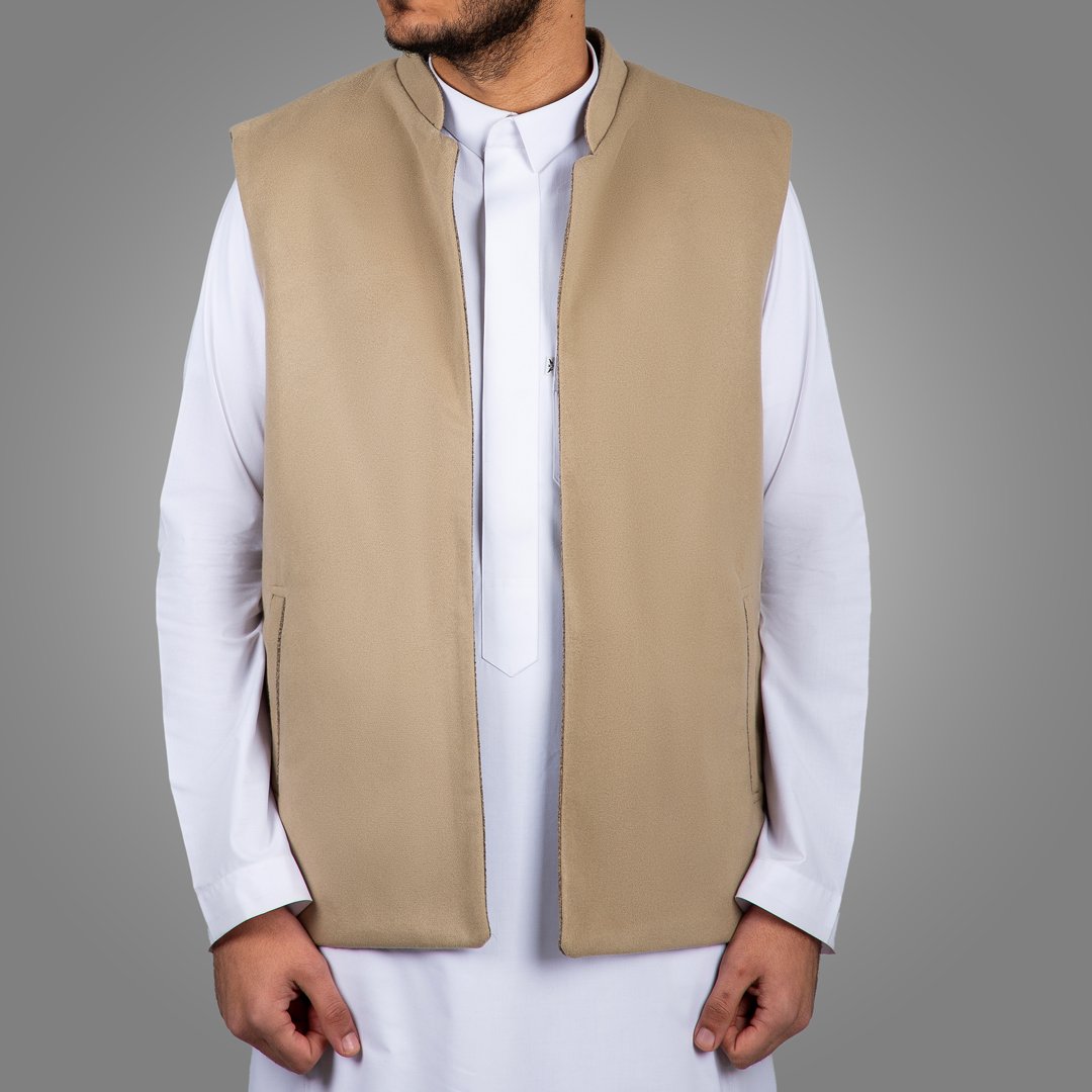 سديري رجالي بتصميم وجهين أنيق، يجمع بين اللون البيج الراقي والبني الفاتح، ليمنحك مرونة في تنسيق إطلالاتك اليومية والرسمية. لكل رجل يهتم بالأناقة والتنوع. تصميمه العملي وخاماته الفاخرة يجعلان منه الاختيار الأمثل لإطلالاتك اليومية والرسمية. من أفصل تشكيلة سديريات في الخليج.