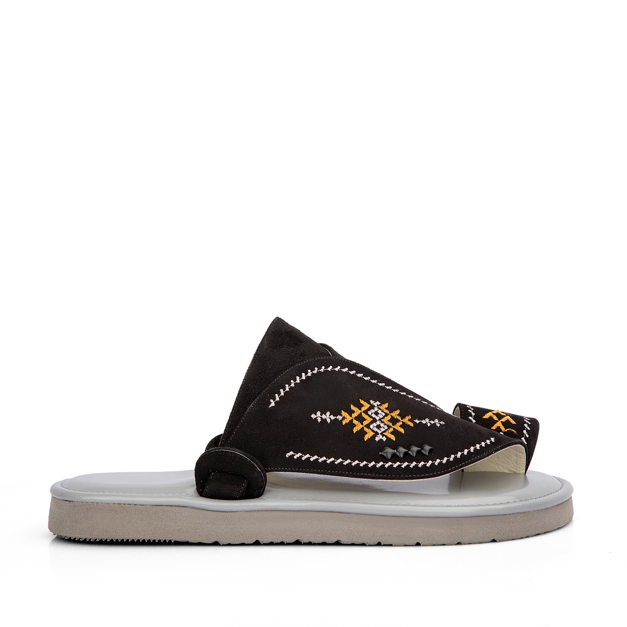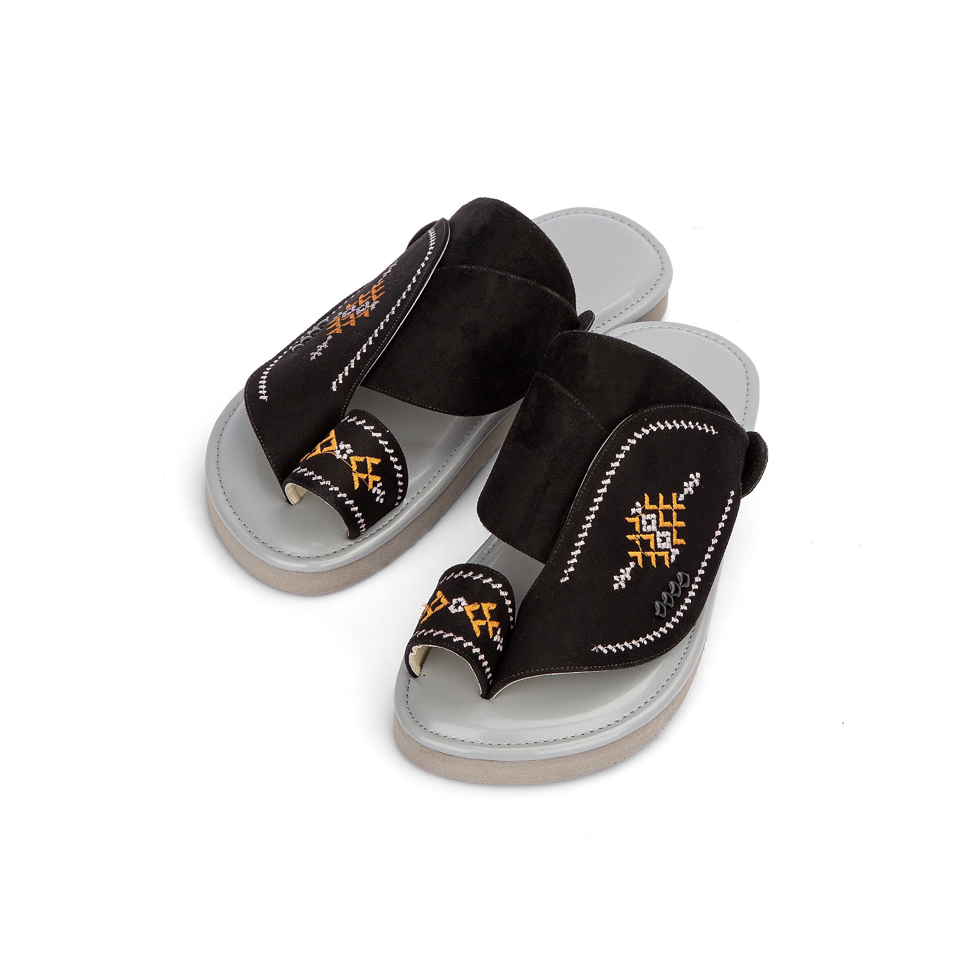 نعال شرقي أسود مطرز بنعل طبي رمادي
